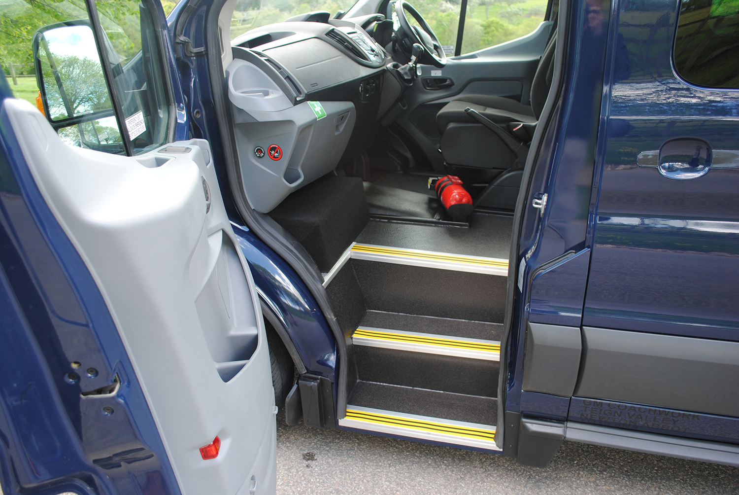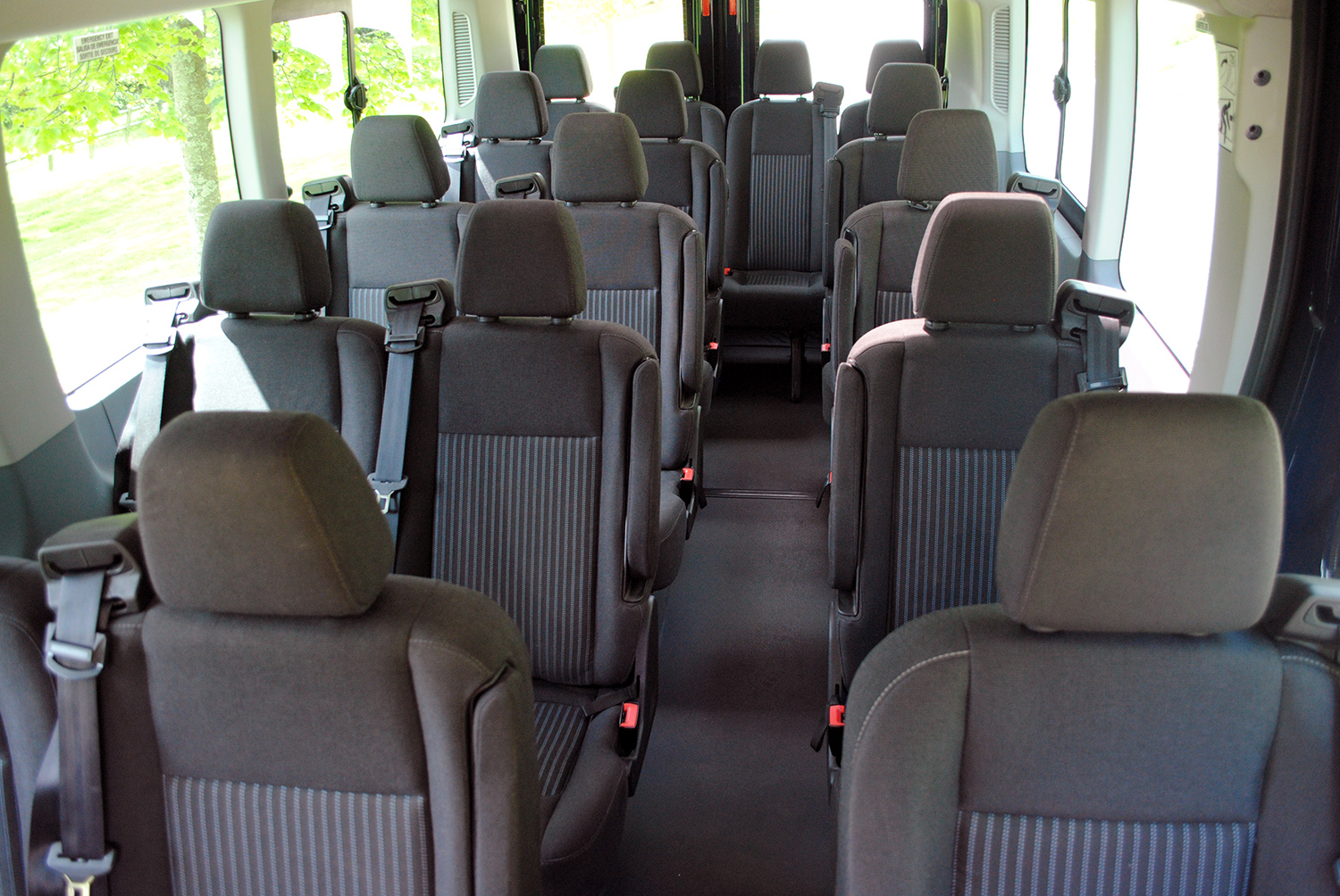 The Ford Transit Falcon can accommodate up to 16 OEM seats in the rear cabin with integral seatbelts.